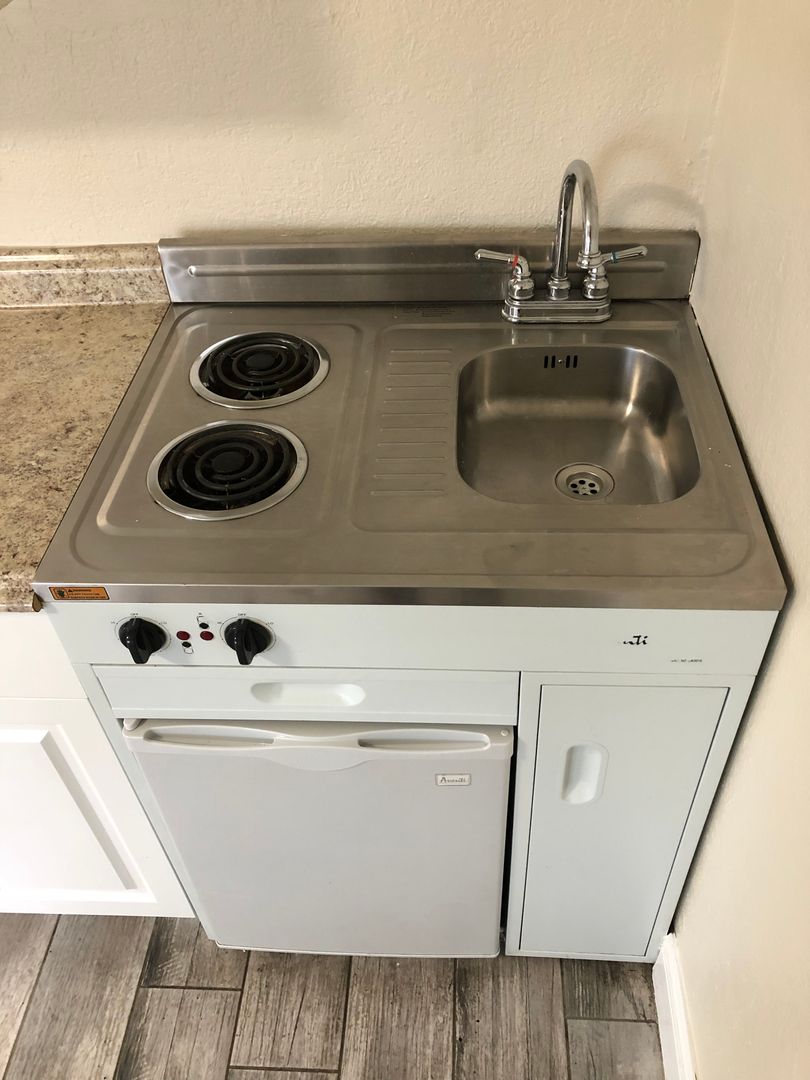 The Cottages in the Heights is a charming community of single-story efficiency studio apartments nestled in the unique Old Seminole Heights neighborhood of Tampa. Conveniently located on Nebraska Ave just off I-275 and near several local restaurants, stores, ZooTampa at Lowry Park, and other great Tampa Bay area amenities. This recently renovated, stylish studio unit features a spacious floorplan and is outfitted with an efficiency kitchen with generous cabinet storage, a mini fridge, 2 stovetop burners, a separate full bathroom with walk-in shower, and a closet space. Resident parking is available on-property and rent includes water, sewer, and trash utilities. There is a $40 application fee that includes a full background check, credit check, and income verification.